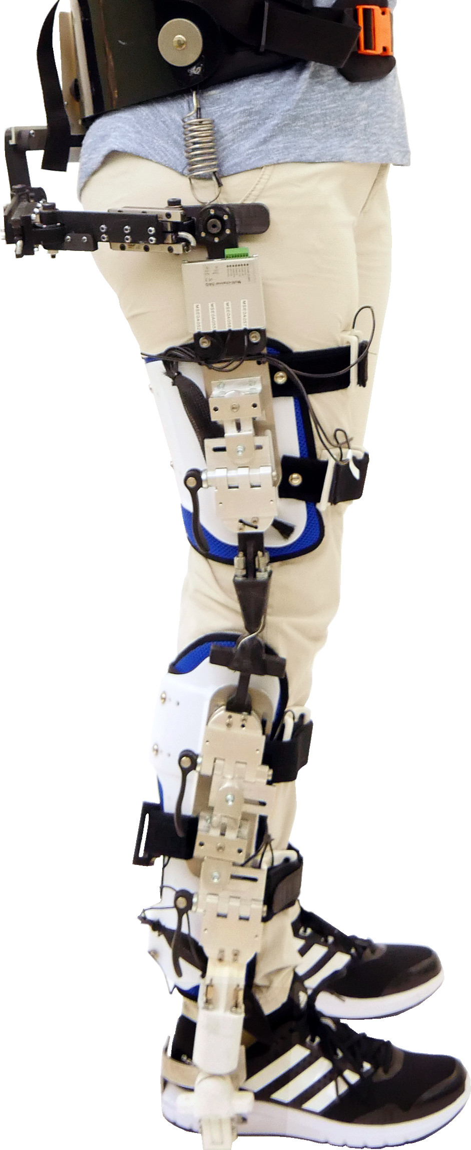 Inversion/Eversion, Innen-/Außenrotation und Dorsalflexion sind passive Freiheitsgrade, während die Plantarflexion durch die symmetrische, parallele Gelenkarchitektur aktiv unterstützt wird. Eine zentral montierte Aktoreinheit wird über einen individuell einstellbaren Hüftgurt, der nahe dem Schwerpunkt positioniert ist, am Körper des Benutzers befestigt, um die Kraftübertragung und den Komfort für den Benutzer zu verbessern. Das bilaterale Exoskelett wiegt 2,4 kg (1,2 kg pro Seite) und die zentrale Aktoreinheit 3,3 kg.